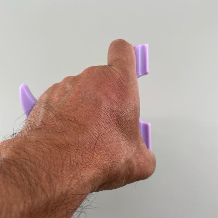 フォーク片側の抉れた部分に人差し指を包み込み、もう片側のフォークを押す親指(※フィンガーサポートグリップ)に対して、大きく反ったグリップエンドにかかった小指を引き絞った瞬間・・・